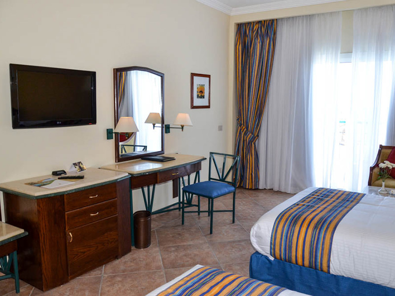 Реновация была произведена всего на 80% номерного фонда, поэтому есть большая вероятность, что предоставят не отремонтированный номер. По дизайну и стилю номера достаточно простые, без шика и излишеств. Обязательное присутствие яркого элемента декора синего или оранжевого цвета. Все номера оборудованы сейфом, мини баром, туалетными принадлежностями, кондиционером.