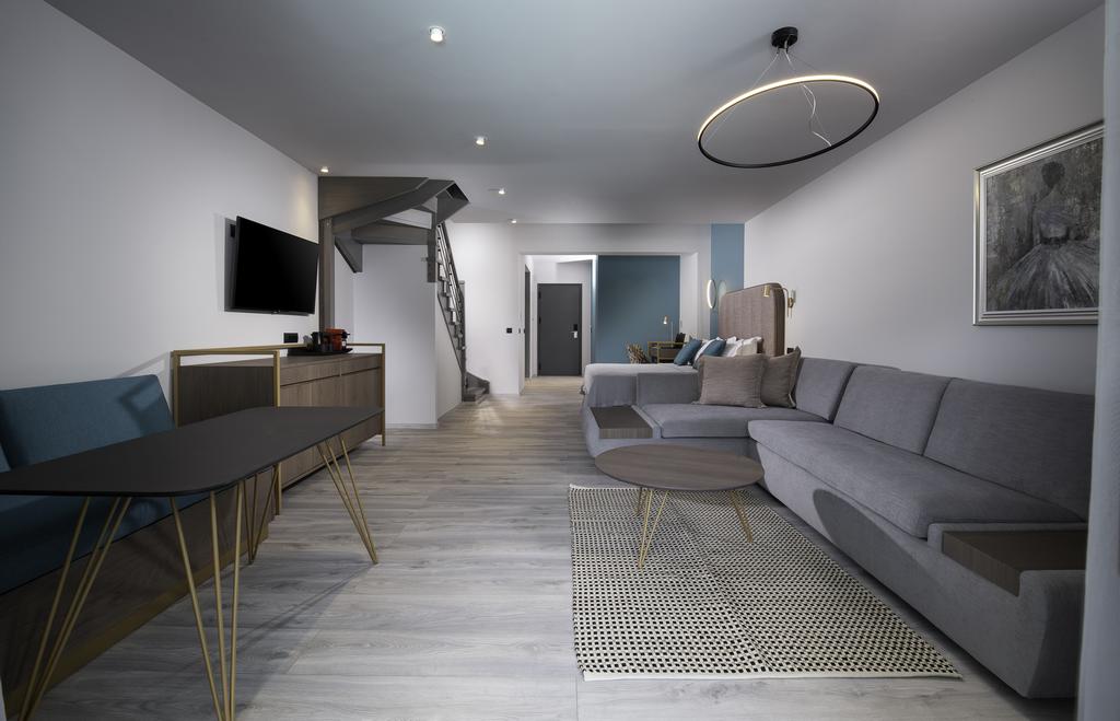 Люкс (79 кв.м) с двумя спальнями, балконом и персональным бассейном. Для проживающих доступна бесплатная парковка, зонты и лежаки на пляже. Двухуровневый номер с отменной звукоизоляцией. Современная мебель, оформлен в сдержанных тонах.