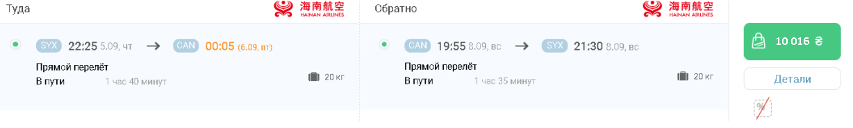Примерный просчет перелета в Гуанчжоу из Хайкоу