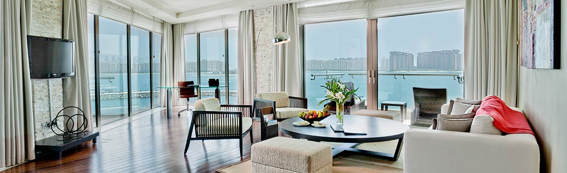 Номер (150 кв.м.) с двумя локальными спальнями и гостиной, балконом или террасой. За окном пейзаж залива. В гостиной дизайнерская мебель. В одной спальне огромное место для сна, во второй – поменьше. Две ванные, дополнительный санузел. Оборудован для проживания четырех взрослых + 2 ребенка.