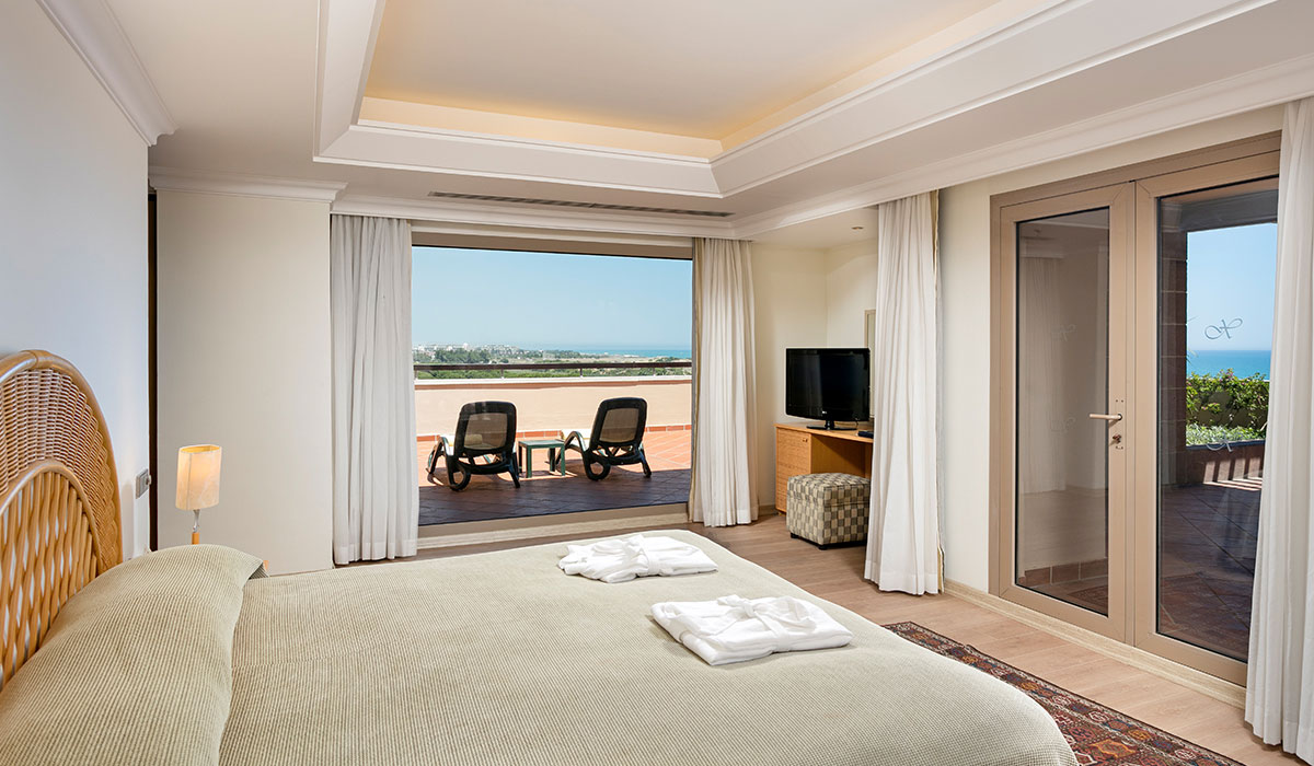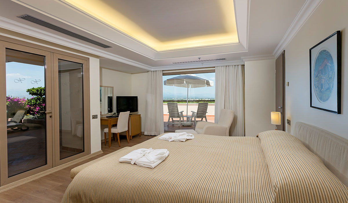 Полулюксы (45 кв.м) со спальней и гостиной. За окном морской пейзаж или роскошная садово-парковая зона.